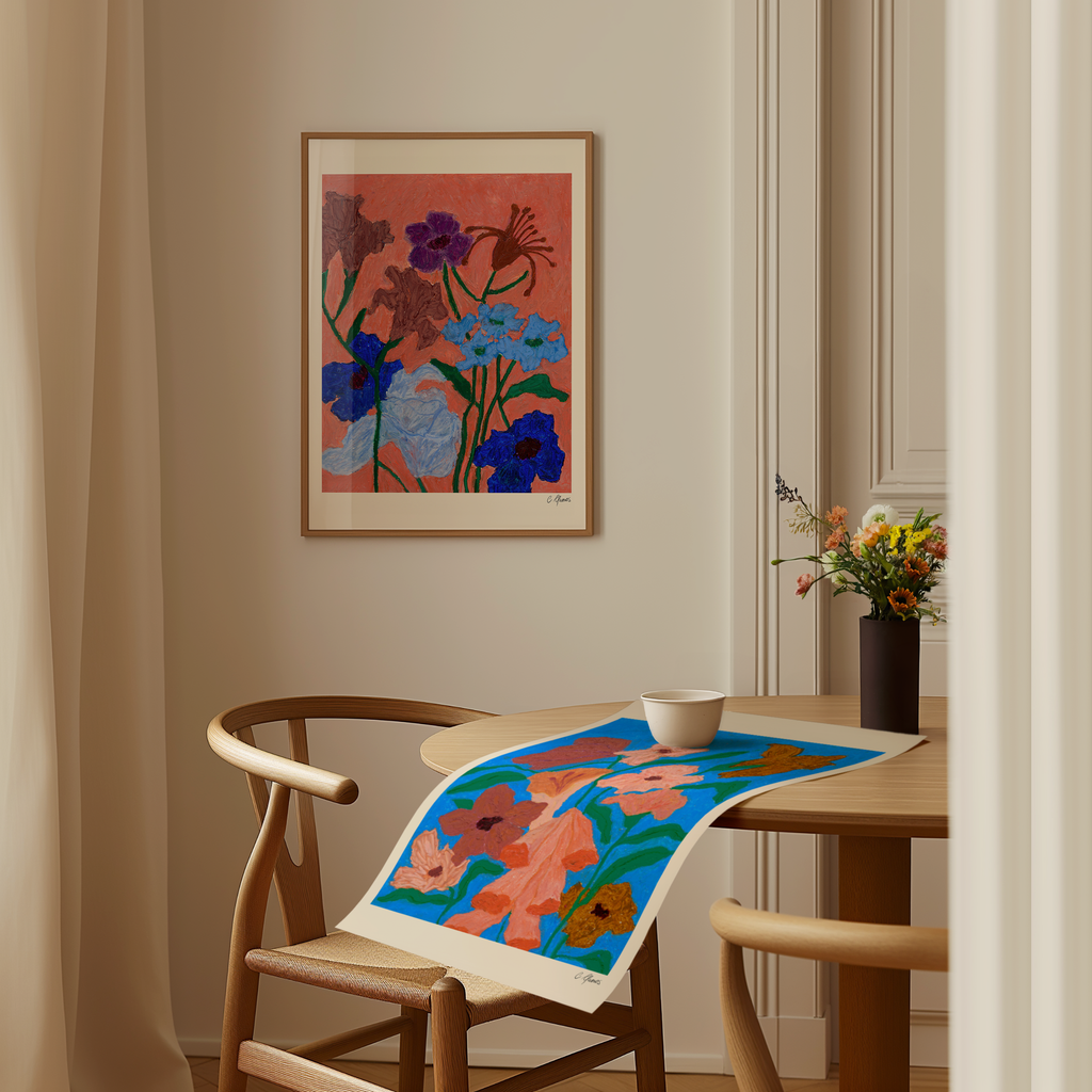 Carla Llanos is a Bristol-based Chilean artist that is easily inspired but feels a specifically strong connection with femininity, flowers, ceramics, and the simple things of everyday life. Joyful, Colourful, bright, and bold are the best words to describe her artistic style. The rich colour palettes and vivid scenes in her work inspire a sense of aliveness and uplifting positivity.